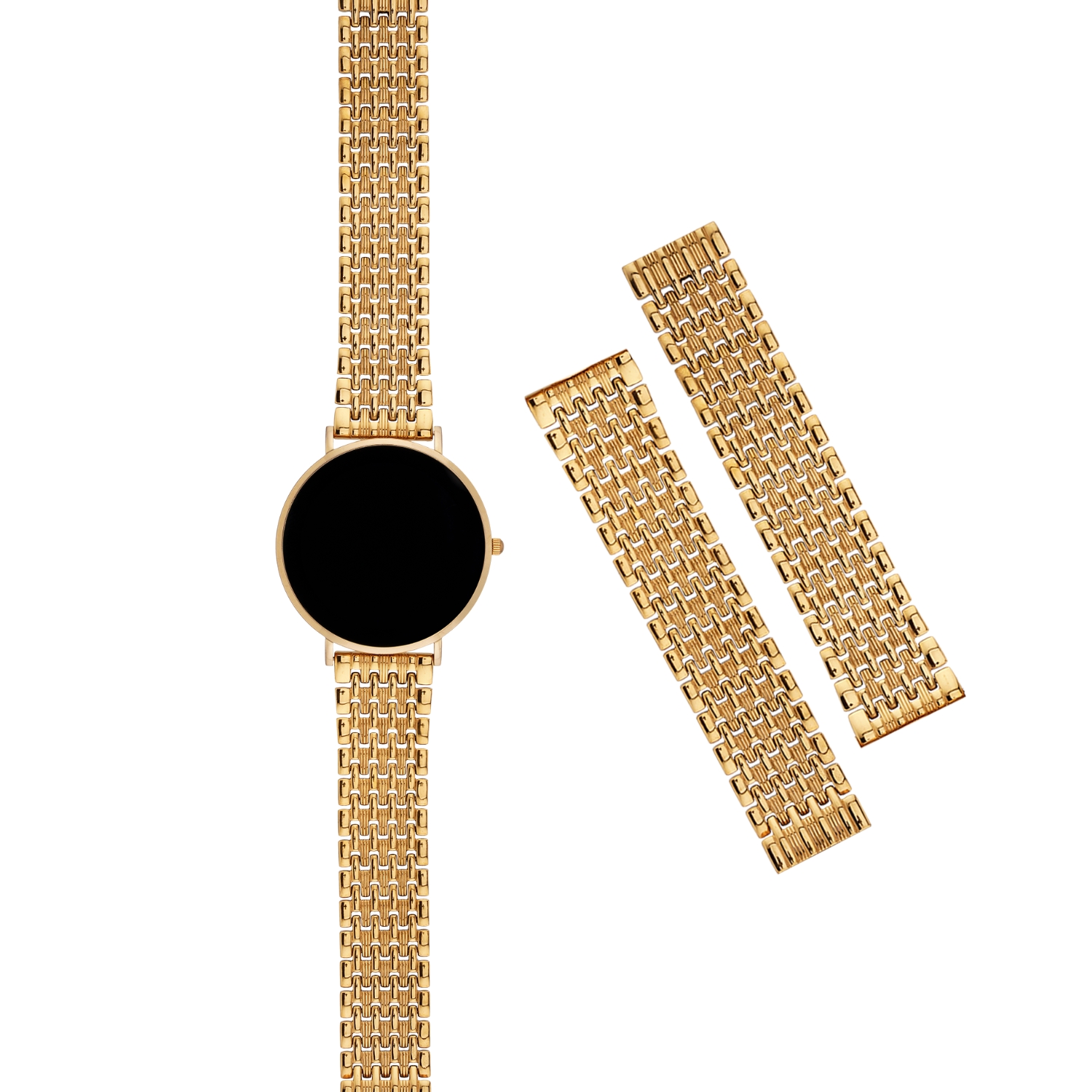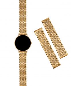 Das Elegance Gold Mesh-Wechselarmband besticht durch seine luxuriöse Strickoptik und verleiht deiner SIONA 2 Smartwatch eine edle, zeitlose Note. In einem warmen Citrin Gold gehalten, bietet dieses Armband nicht nur einen Hauch von Glamour, sondern auch höchsten Tragekomfort. Dank des praktischen Schnellverschlusses kannst du das Armband mühelos austauschen und perfekt auf jedes Outfit abstimmen. Die langlebige Edelstahlkonstruktion sorgt dafür, dass es auch nach häufigem Tragen seine optimale Passform beibehält.