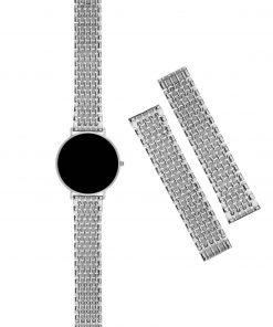 Setze mit dem Elegance Silver Wechselarmband ein stilvolles Statement und verleihe deiner SIONA 2 Smartwatch einen modernen, luxuriösen Look. Die elegante Strickoptik und das glänzende Silber harmonieren perfekt, um deinem Handgelenk einen Hauch von Raffinesse zu verleihen. Der komfortable Schnellverschluss ermöglicht einen mühelosen Austausch, sodass du dein Armband jederzeit an dein Outfit anpassen kannst – ob im Büro oder beim Ausgehen. Gefertigt aus hochwertigem Edelstahl, garantiert das Armband nicht nur Langlebigkeit, sondern auch perfekten Sitz bei jedem Tragen.