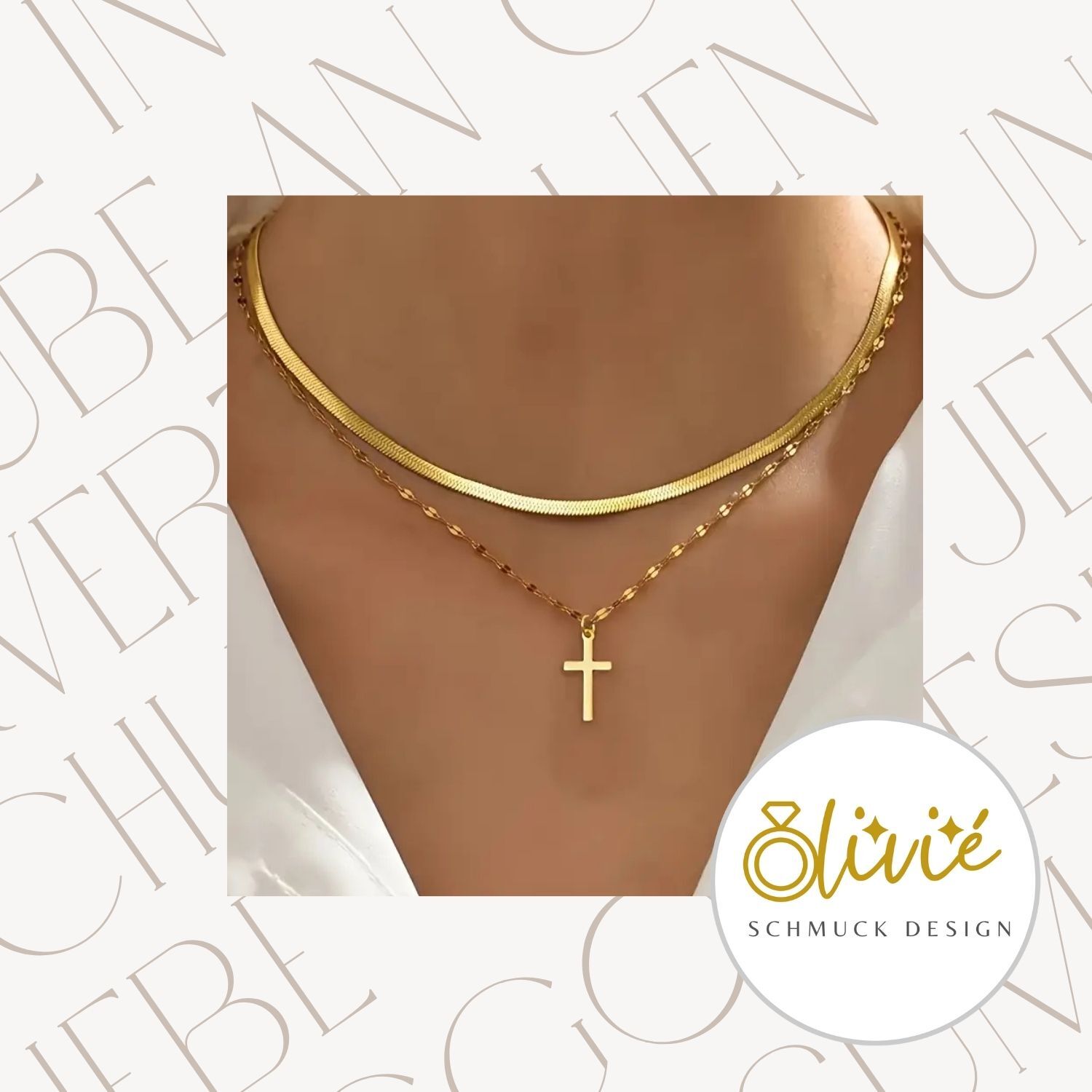 Elegante Damen Halskette aus Edelstahl – mehrlagige Layer-Kette mit Kreuzanhänger, hautfreundlich & farbbeständig
