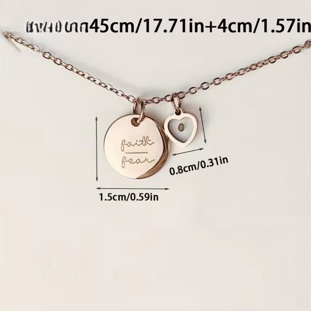 Diese elegante Glaubenskette verbindet modernes Design mit tiefer spiritueller Bedeutung. Die roségoldene Halskette aus hochwertigem Chirurgenstahl trägt zwei besondere Anhänger: ein zartes Herz mit Senfkorn in der Mitte sowie eine runde Medaille mit den Worten „faith“ und „fear“. Inspiriert vom Bibelvers aus Matthäus erinnert dich dieses Schmuckstück daran, dass selbst ein kleiner Glaube – so klein wie ein Senfkorn – große Kraft entfalten kann. Das Herz steht für Liebe und Vertrauen, während die Medaille dich jeden Tag neu einlädt, dich bewusst für faith statt fear zu entscheiden.