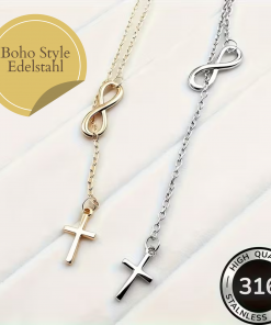 Minimalistische Damen Kreuzkette mit Unendlichkeit – Zeitloses Geschenk zum Valentinstag
