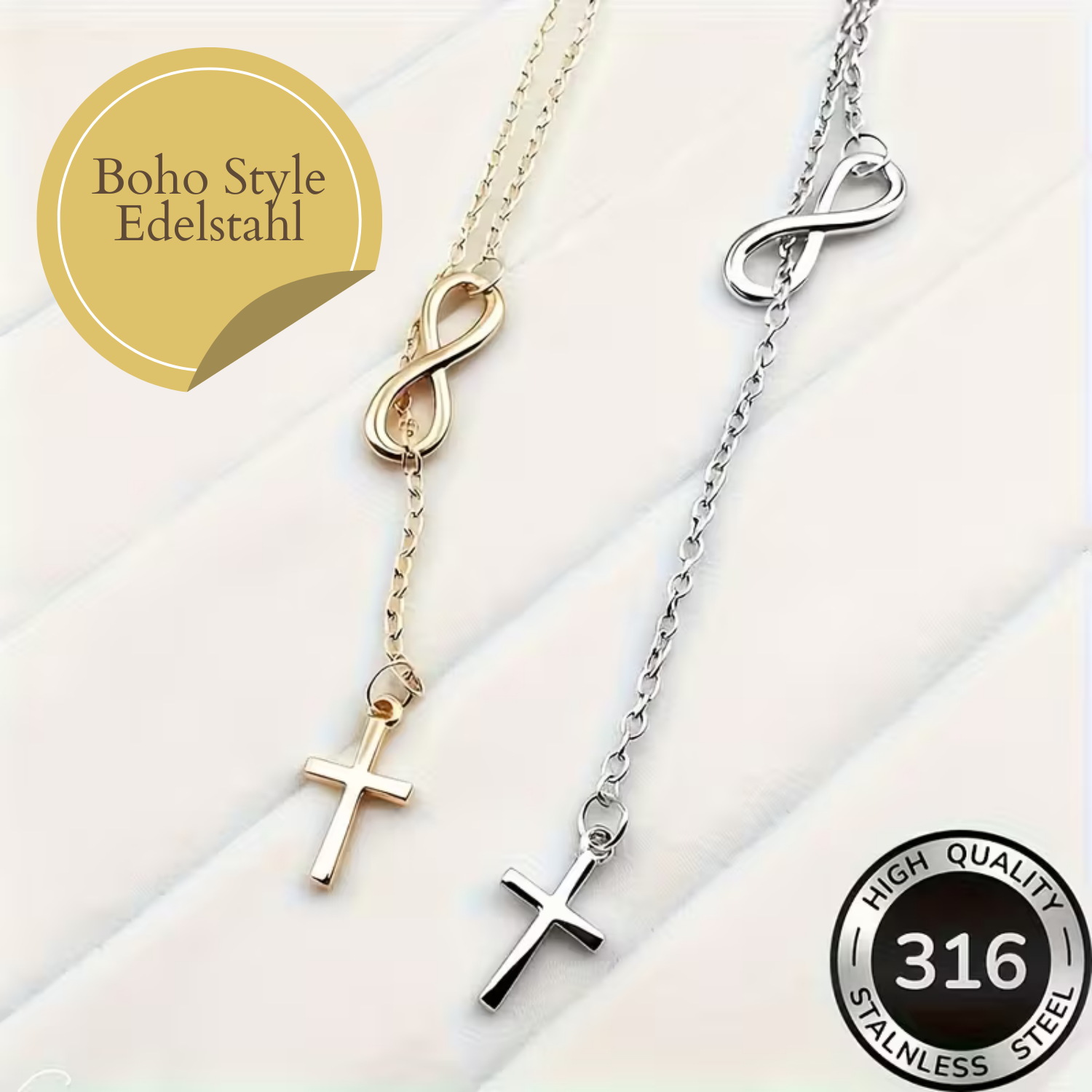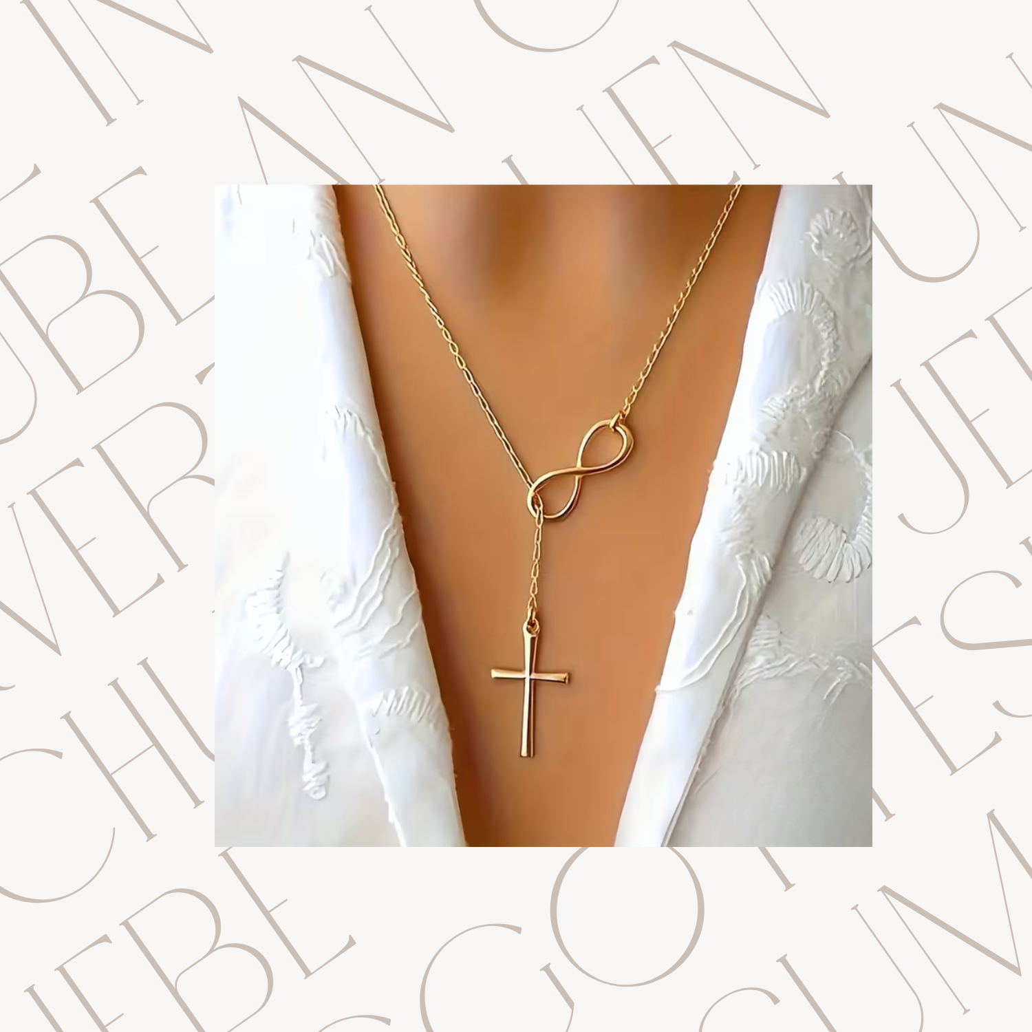 • Klares, minimalistisches Design mit Kreuz und Unendlichkeitsschleife – Symbol für Glauben, Liebe und Ewigkeit
