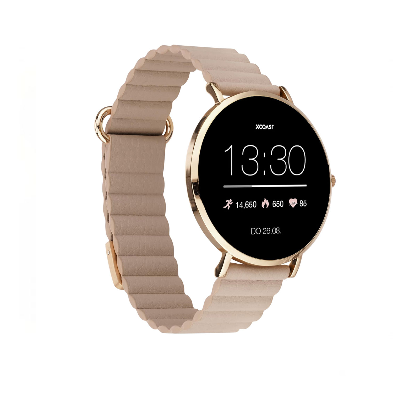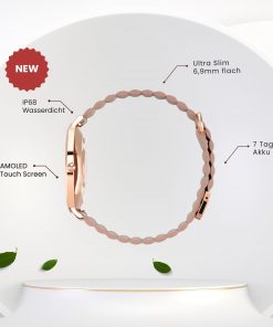 Die SIONA 2 in Sand vereint modernes Design und innovative Technologie in einer stilvollen Smartwatch. Jetzt in elegantem Sand und ausgestattet mit einem Echtlederarmband, das durch seine praktische Magnetverschluss und authentische Wellenoptik besticht. Dieses Modell ist ideal für Frauen, die eine elegante, aber funktionale Uhr suchen, die sie mühelos durch ihren Alltag begleitet. Als neueste Kreation der XCOAST-Produktlinie setzt die SIONA 2 in Sand neue Maßstäbe in Design und Funktionalität, basierend auf dem Erfolg der Siona XW FIT. Ob beim Workout, im Büro oder bei einer stilvollen Abendveranstaltung – die SIONA 2 in Sand ist das perfekte Accessoire. Mit ihrem schlanken Gehäuse von nur 6,9 mm Tiefe kombiniert sie den modernen Look einer Smartwatch mit dem klassischen Charme einer analogen Uhr. Das lebendige Touch-AMOLED-Display bietet dir über 200 Watchfaces zur Auswahl, damit du deinen Stil immer individuell anpassen kannst. Du hast sogar die Möglichkeit, dein eigenes Foto als Hintergrund zu verwenden, um deine SIONA 2 noch persönlicher zu gestalten.
