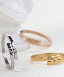 Dieser verstellbare Ring mit der Gravur „TRUST GOD“ ist mehr als ein Schmuckstück – er ist ein persönliches Symbol für Vertrauen, Hoffnung und innere Stärke. Die klare, kraftvolle Botschaft begleitet dich im Alltag und erinnert dich an deine Werte und Überzeugungen.