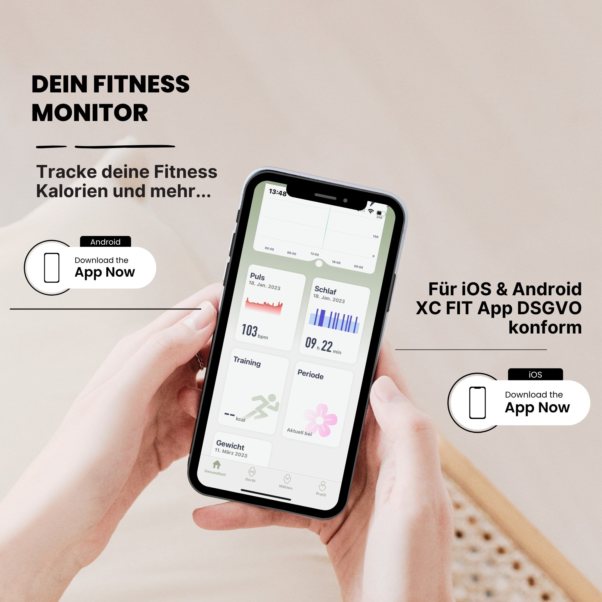 Hinweis: Die Daten der Herzfrequenzmessung dienen unter keinen Umständen zur medizinischen Kontrolle. Sie dienen bspw. als Vergleichswert vor und nach dem Sport.*Hinweis: Deine Smartwatch kann mithilfe einer Vielzahl von Android- oder iOS-Apps mit deinem Smartphone verbunden werden. Dabei können personenbezogene Daten (Sensordaten wie z.B. Standortdaten etc.) verarbeitet werden. Wir sind weder Entwickler noch Betreiber dieser Apps und haben so weder Einfluss noch Zugriffsmöglichkeiten auf die dabei verarbeiteten Daten. Bitte lies vor jeder Installation einer App die im App-Store hinterlegten Datenschutzinformation des jeweiligen Betreibers sorgfältig durch.