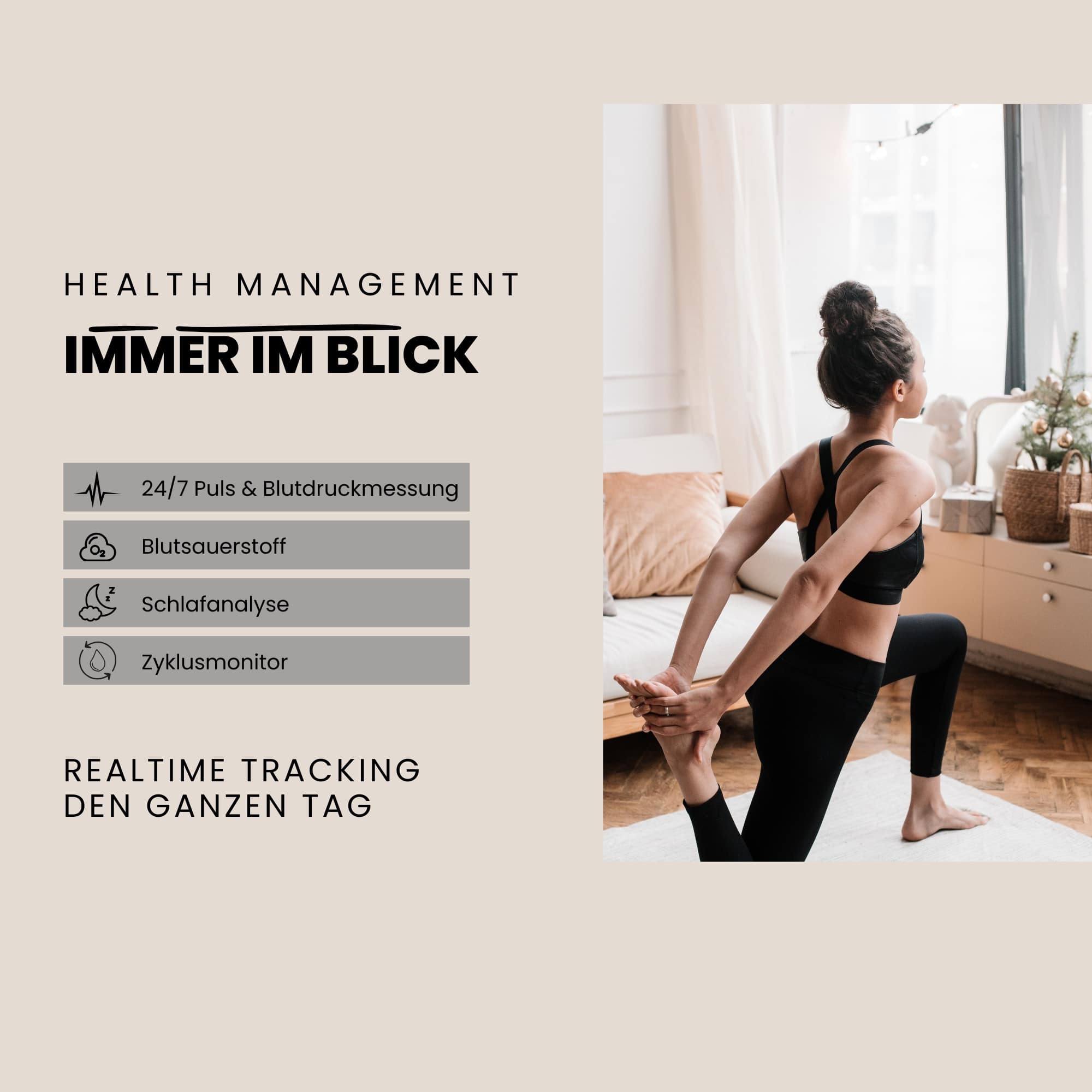 Hinweis: Die Daten der Herzfrequenzmessung dienen unter keinen Umständen zur medizinischen Kontrolle. Sie dienen bspw. als Vergleichswert vor und nach dem Sport.*Hinweis: Deine Smartwatch kann mithilfe einer Vielzahl von Android- oder iOS-Apps mit deinem Smartphone verbunden werden. Dabei können personenbezogene Daten (Sensordaten wie z.B. Standortdaten etc.) verarbeitet werden. Wir sind weder Entwickler noch Betreiber dieser Apps und haben so weder Einfluss noch Zugriffsmöglichkeiten auf die dabei verarbeiteten Daten. Bitte lies vor jeder Installation einer App die im App-Store hinterlegten Datenschutzinformation des jeweiligen Betreibers sorgfältig durch.