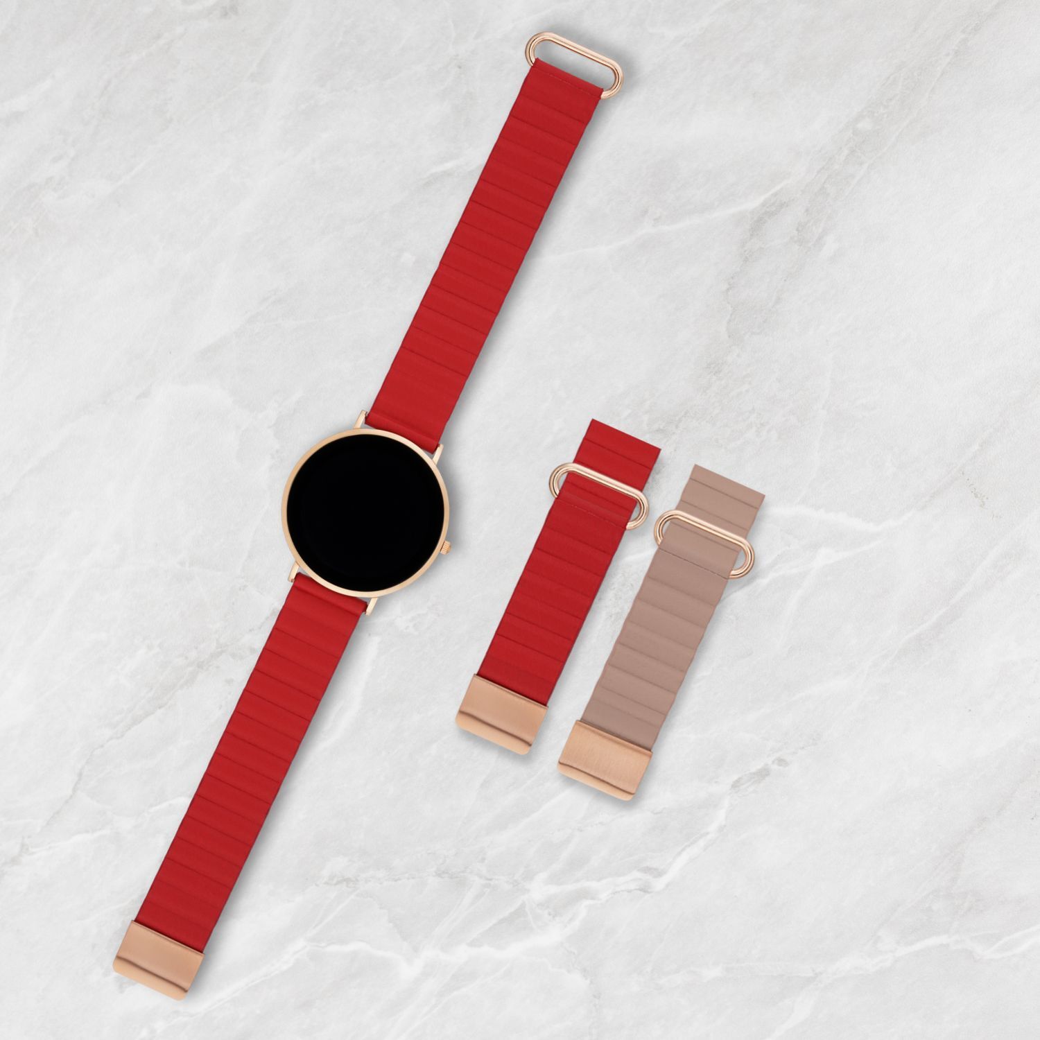 Mit dem Wave Red Magnetarmband setzt du ein kraftvolles und elegantes Statement. Die dynamische wellenförmige Struktur und die raffinierten rosegoldenen Akzente verleihen deiner Smartwatch einen Hauch von Luxus und Individualität. Das satte Kaminrot ist ein echter Hingucker und unterstreicht deinen einzigartigen Stil, egal ob im Alltag oder bei besonderen Anlässen.